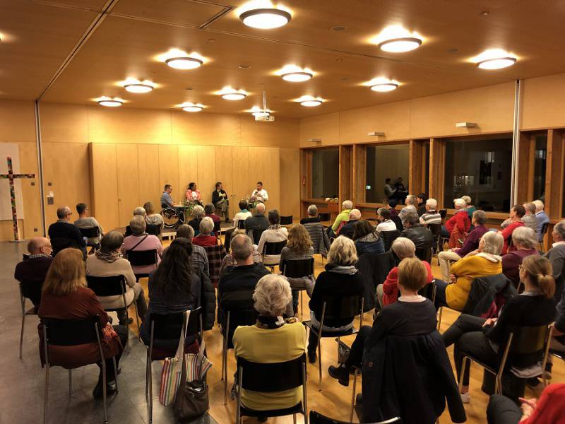 Es war das erste der drei Podiumsgespräche zum Thema Erzähl uns von deiner Hoffnung. Das Interesse war sehr gross, der grosse Saal unseres Pfarreiheims war gut gefüllt. Ca. 70 Personen besuchten den von einer Arbeitsgruppe des Pfarreirates organisierten Anlass.