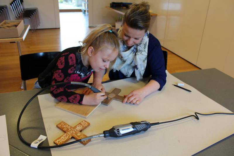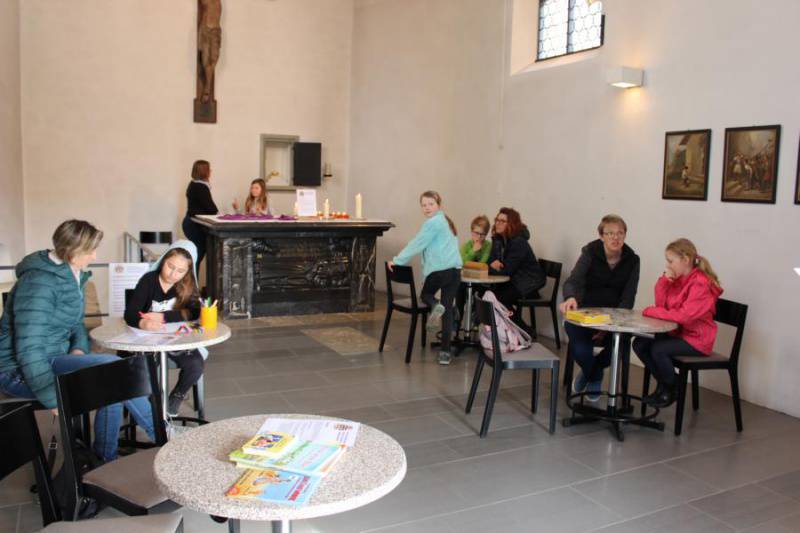 Ausserhalb vom Religionsunterricht durften wir am 12. März einen besonderen Vorbereitungstag durchführen. Nebst der inhaltlichen Vertiefung entstand gestalterisch Kreatives: Zum Beispiel das Erinnerungskreuz. Auf der Spurensuche in und um die Grabkapelle durften sich die Kinder und ihre Eltern mit einigen Wegweisern unseres Glaubens beschäftigen. An diesen Stationen durften sie gemeinsam feiern, spielen, nachdenken, reden, malen und dabei noch mehr Spuren von Jesus entdecken.