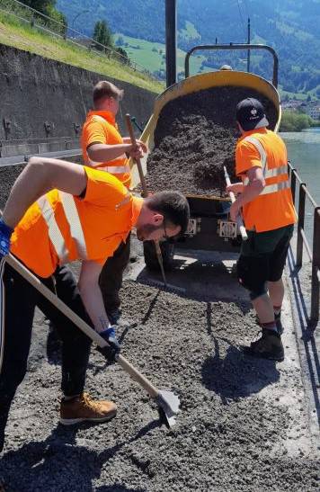 Am zweiten Tag leisteten die Jugendlichen gemeinnützige Einsätze: Bei der Gemeindearbeit wurde ein Teil des Seeweges erneuert; beim Forst wurde die Älggistrasse von Steinen und Schmutz befreit; bei der Spitex wurde alten und pflegebedürftigen Menschen geholfen; u.v.m.