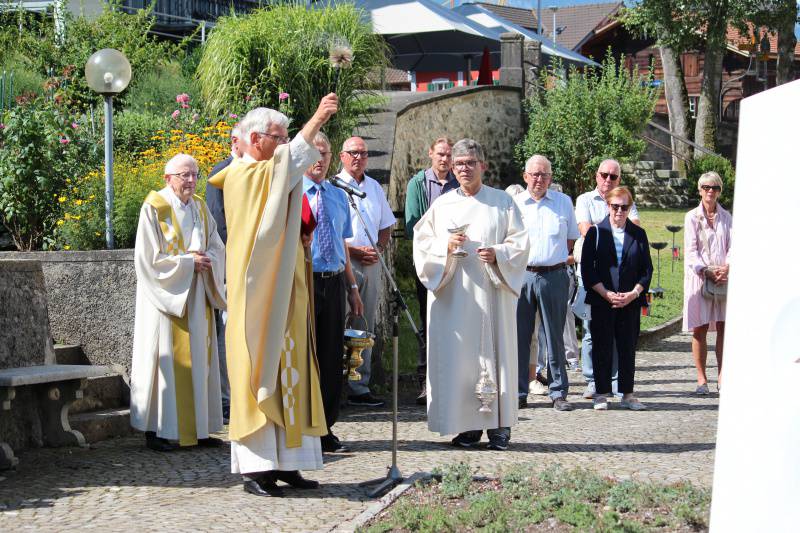 P. Josef Rosenast liess es sich in seiner Predigt nicht nehmen, mit einem Schmunzeln auf die Brunnenvision von Bruder Klaus zu sprechen zu kommen. Oft wäre er vor dem Dorfbrunnen gestanden und hätte sich gewünscht, Wein, Öl und Honig würde aus den drei Brunnenröhren fliessen. Beim Wünschen blieb es. Aber für alles andere gäbe es ja den Laden auf der anderen Seite des Platzes.