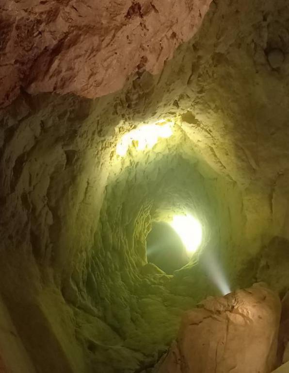 Der Blick in die verborgene Kristallkluft vom Grimsel.