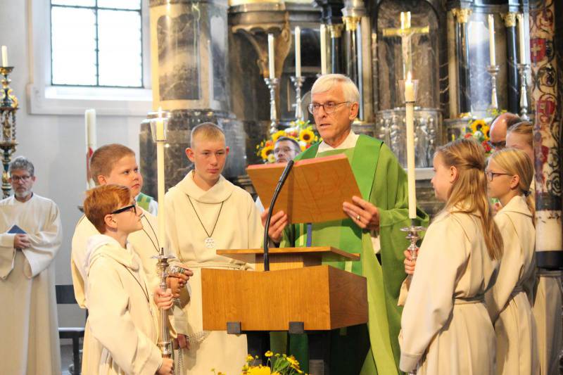 Als Ehrengast hielt dieses Jahr Abt Emmanuel Rutz die Predigt. Dabei verwies er auf drei Fenster in der Zelle von Bruder Klaus: Eines zum Altar hin, eines zu den Menschen und eines mit Blick auf die wilde Natur in der Ranftschlucht. Der Chor der Kantorei - begleitet von einem Instrumentalensemble und Solisten - bereicherte die Feier in der Kirche. Der Apéro bei strahlendem Herbstwetter vor der Kirche mit dem Spiel der Musik Eintracht trug zur Festlichkeit des Anlasses bei.