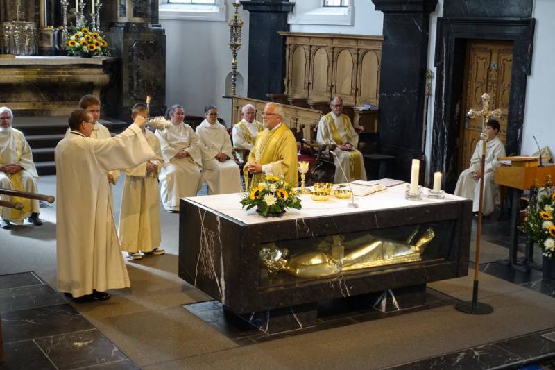 In seinem Predigtwort blickte der Ehrengast Abt Peter Stuefer OSB auf Niklaus von Flüe und den heiligen Benedikt. Beide haben sich in die Stille und Einsamkeit zurückgezogen und daraus Kraft geschöpft. Und beiden war das Hören wichtig.